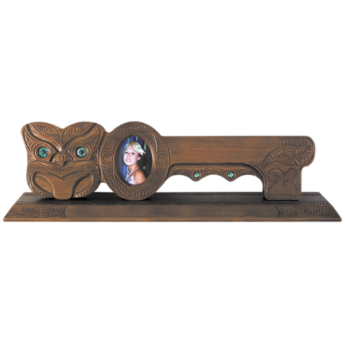 On this 21st Key, the Wheku is feature prominently in front of an empty photo frame, reserved for the birthday individual. 21 is the age that a person in New Zealand is classed as an adult, and the giving of the 21st key is a strong New Zealand tradition to symbolise opening the door of maturity and becoming an adult. Alternatively, the giving of a key is a symbol of the limitless doors they can open in their life.