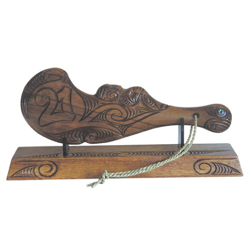 A Wahaika literally means 'mouth of the fish' and was traditionally made of whalebone or would. It is a short club with a carved figure on one side of the blade (Pūkaiora which represents the God of tribal war, who guards warriors during battle). It was used in close hand-to-hand combat, with the Pūkaiora used to deflect blows while allowing the wielder to strike their opponent in the chest, head or wrist.