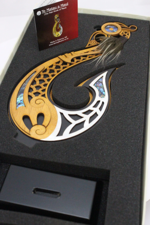This piece of art boasts super fine detail, and paua inlay and comes complete with a wall mount, related story, and protective box.