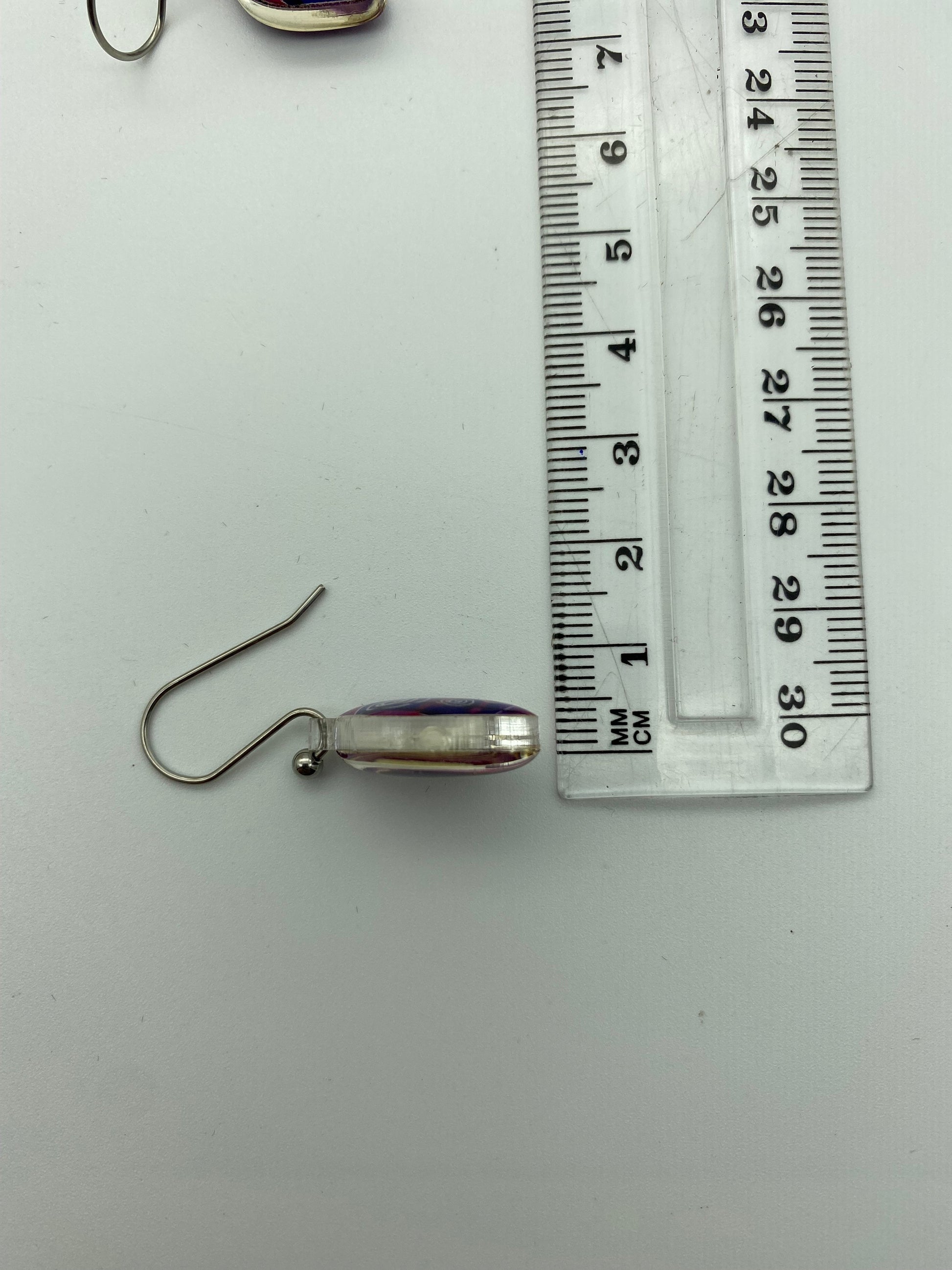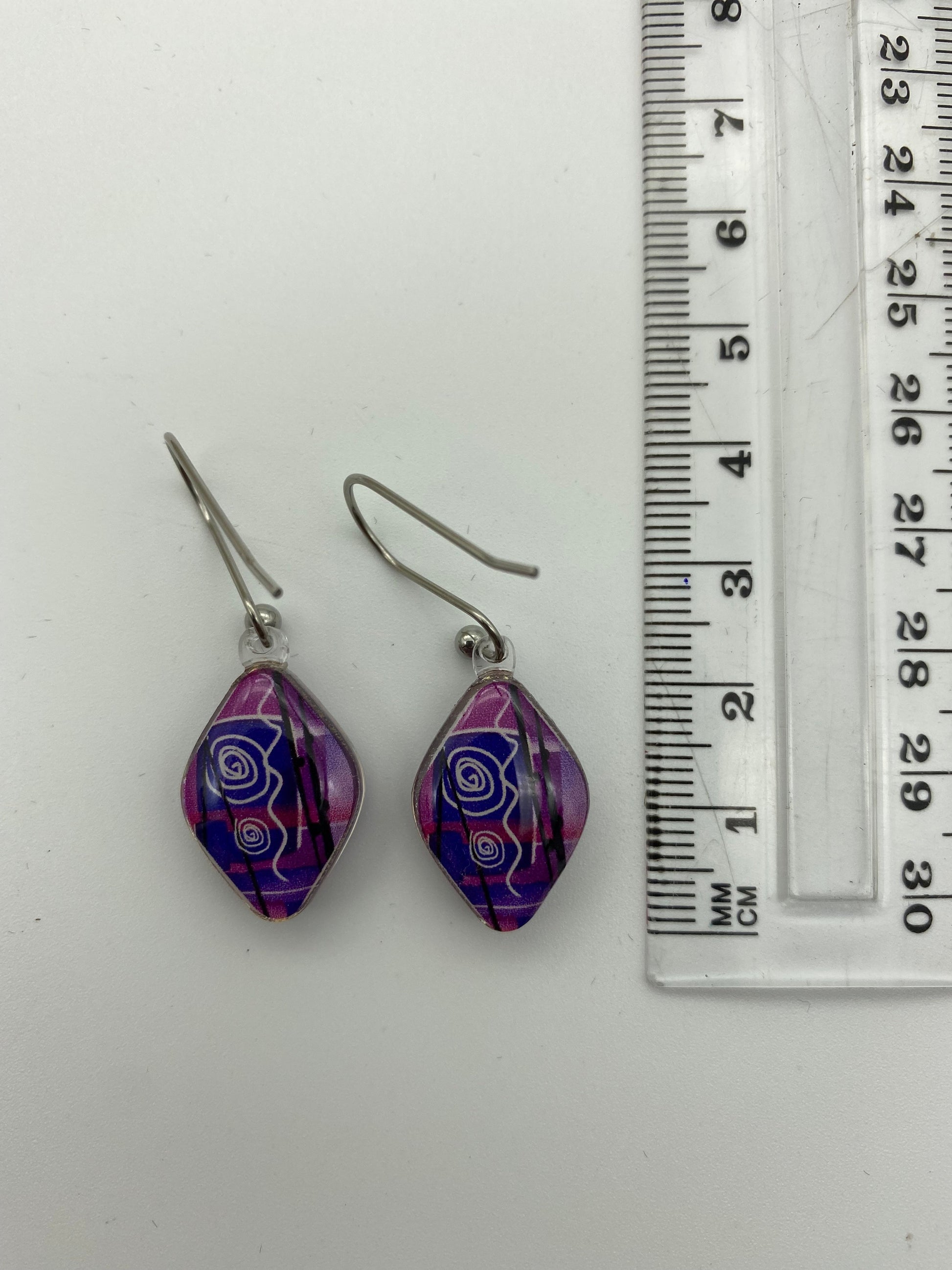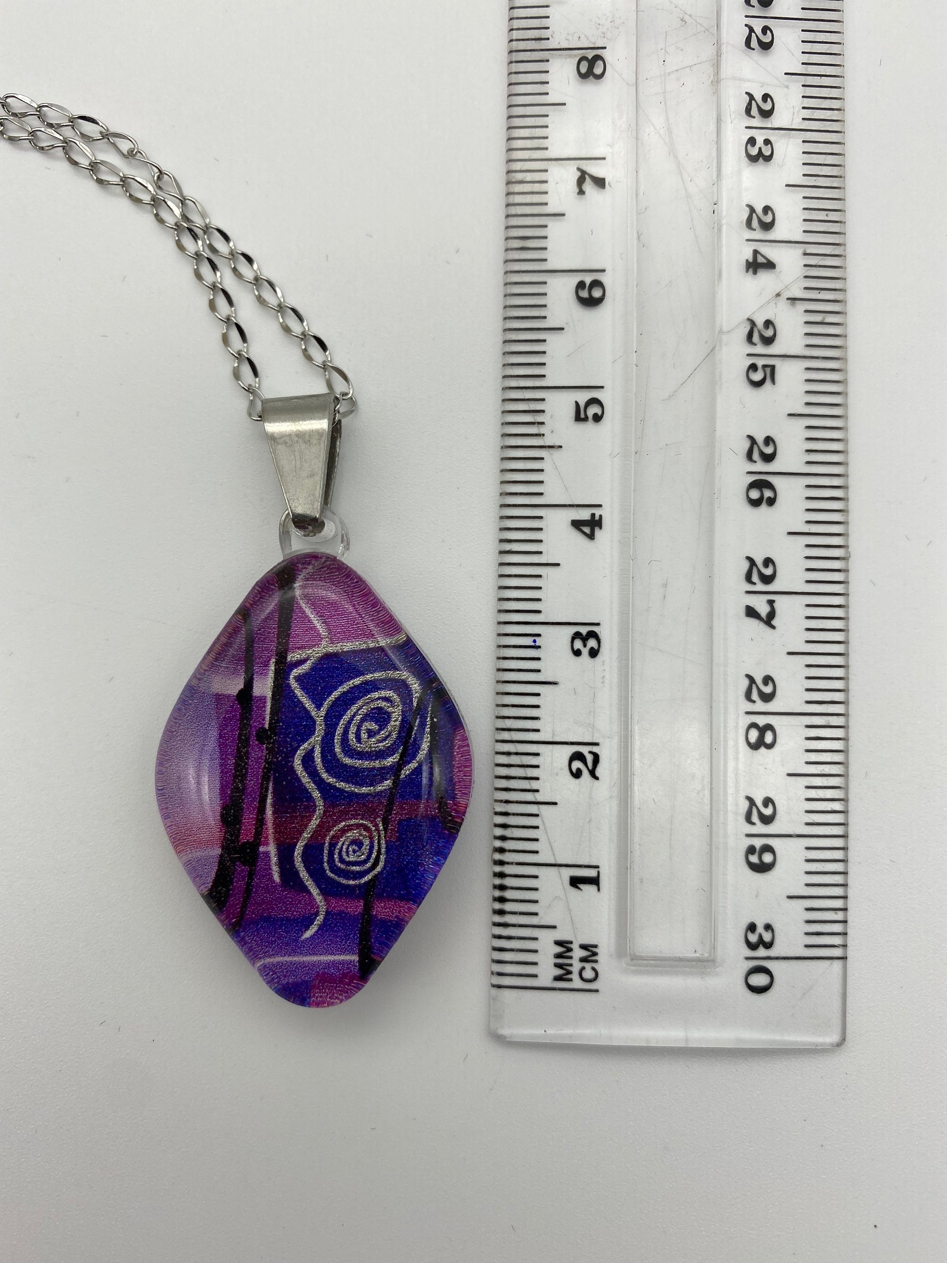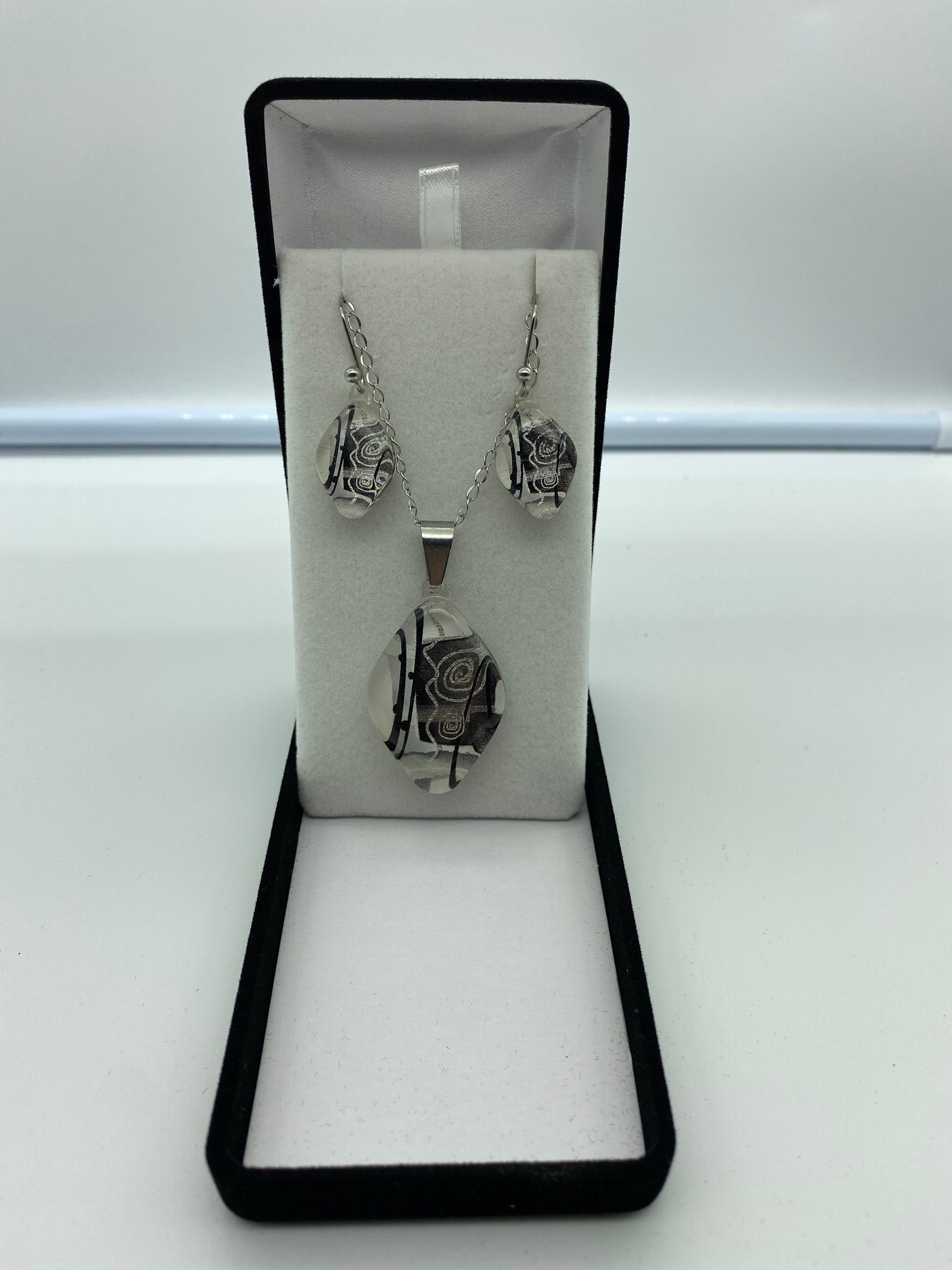 This diamond shaped Pendant & Earring Set is set in resin with a sterling silver chain and clasp. Available in several colours and various designs within the resin.