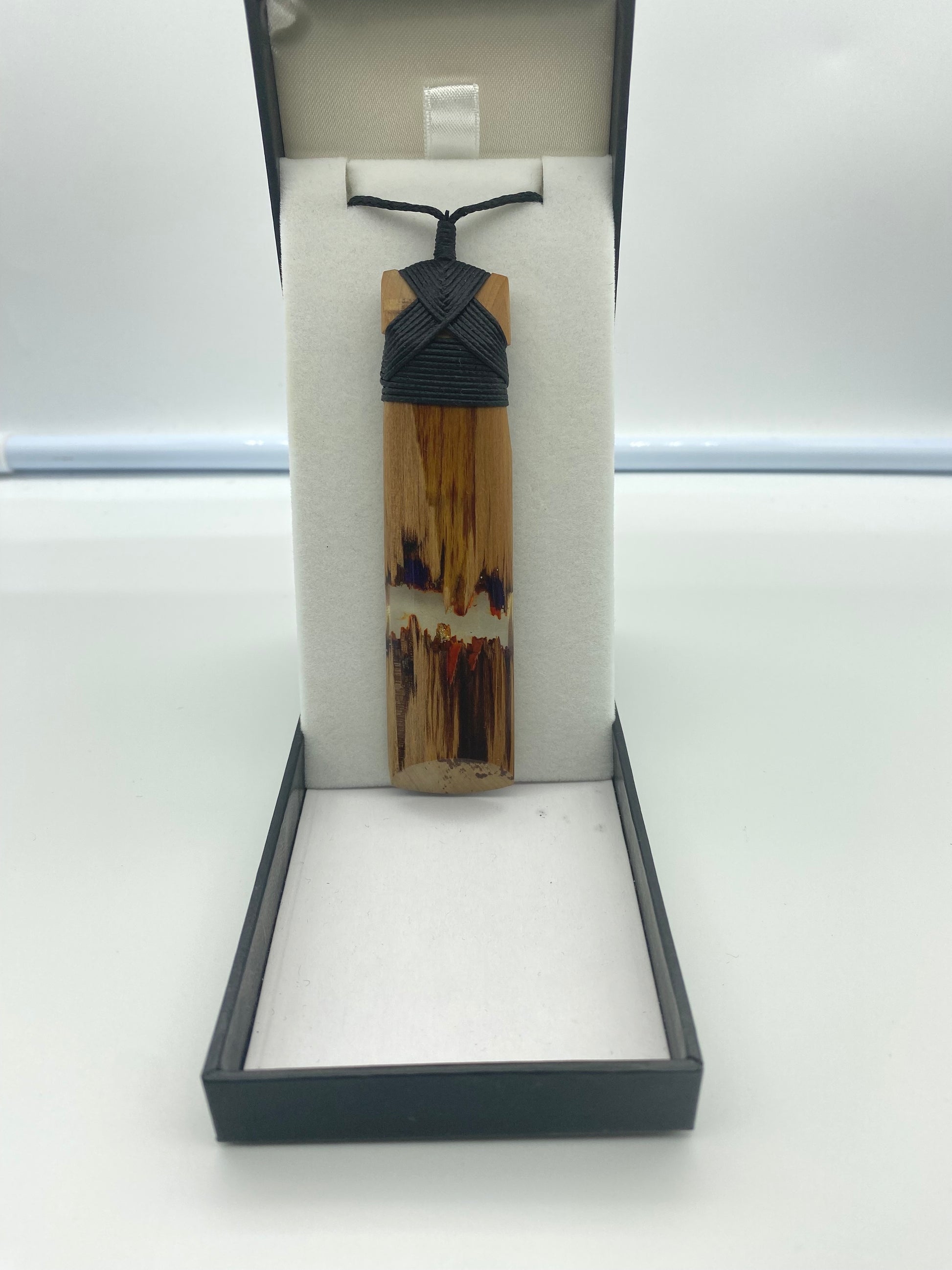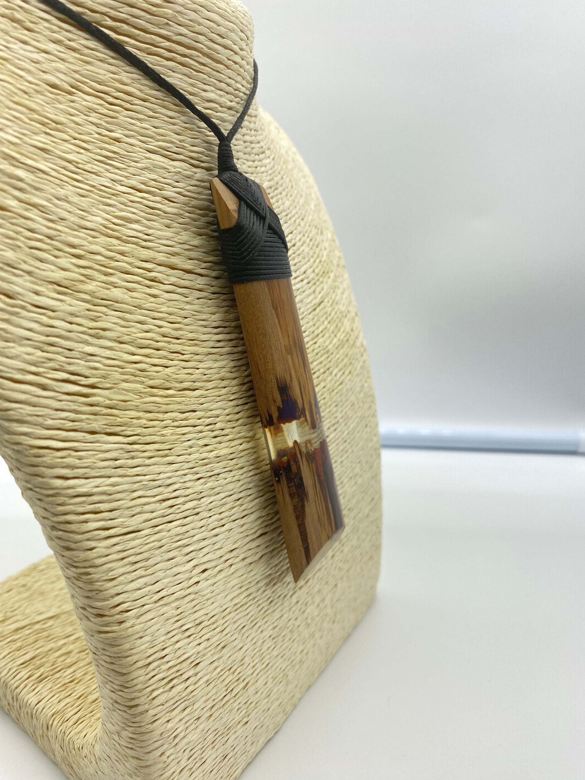 This unique Toki design is created with wood framing a resin center and lashed with waxed cord. Lightweight
