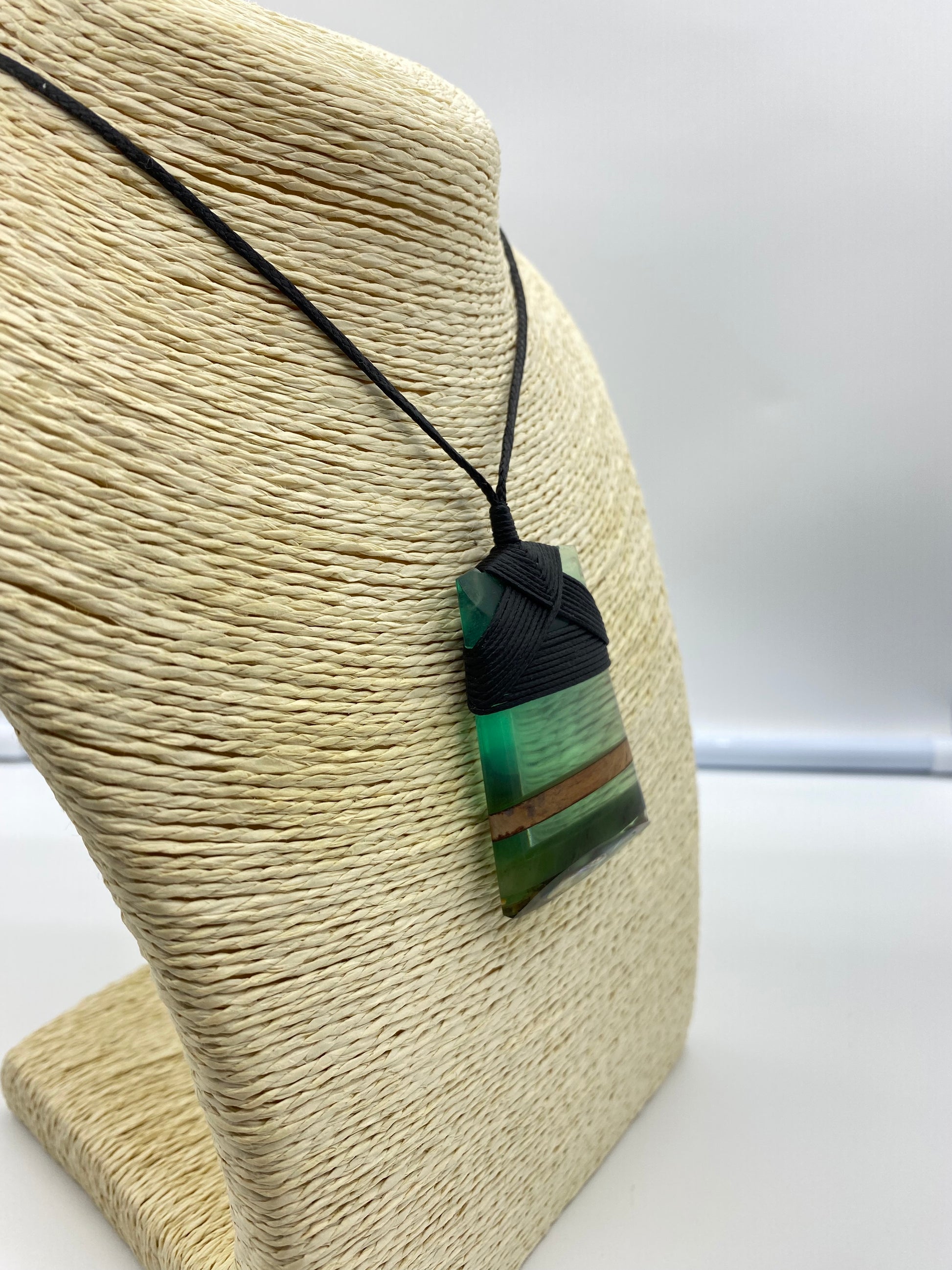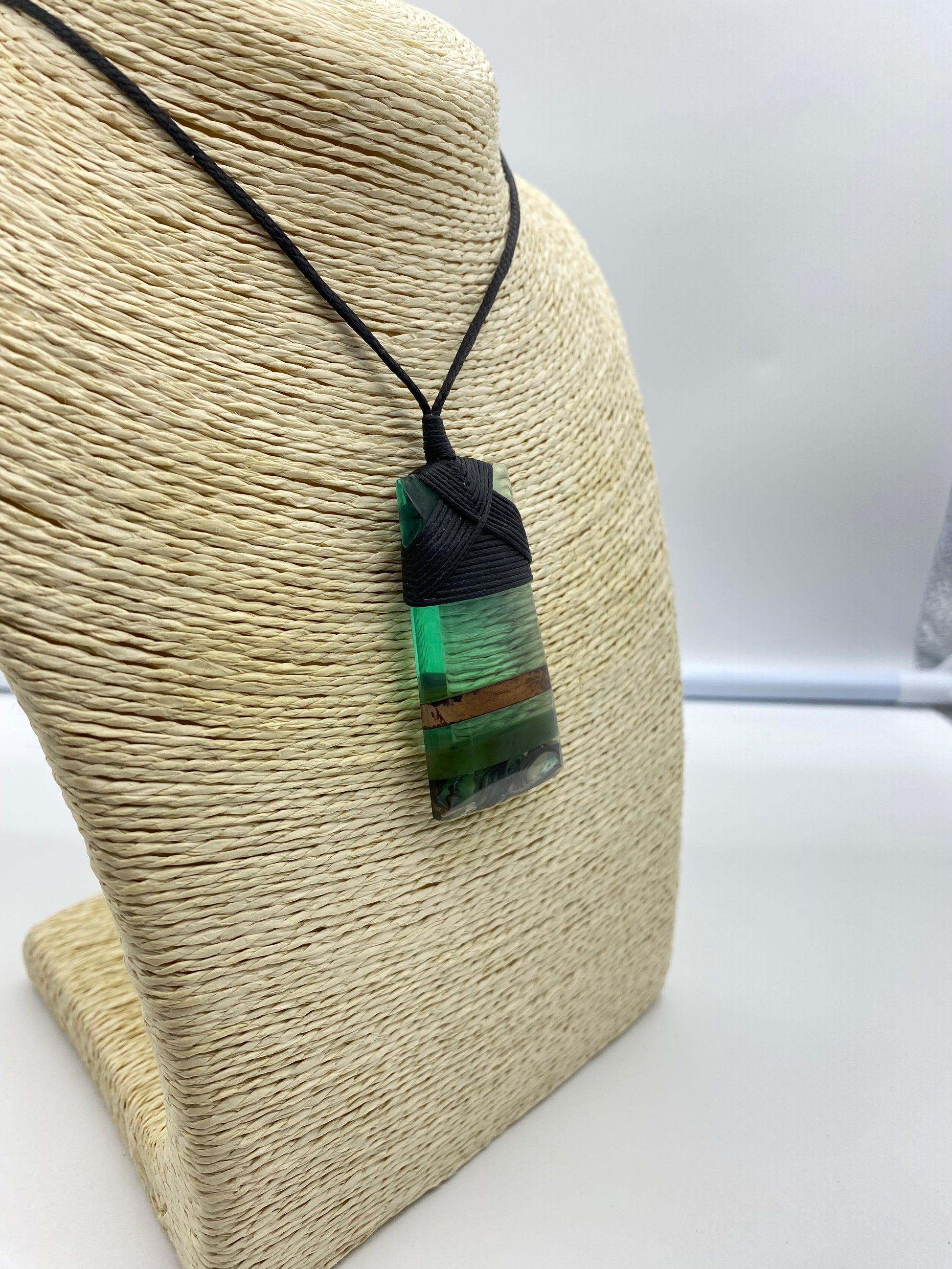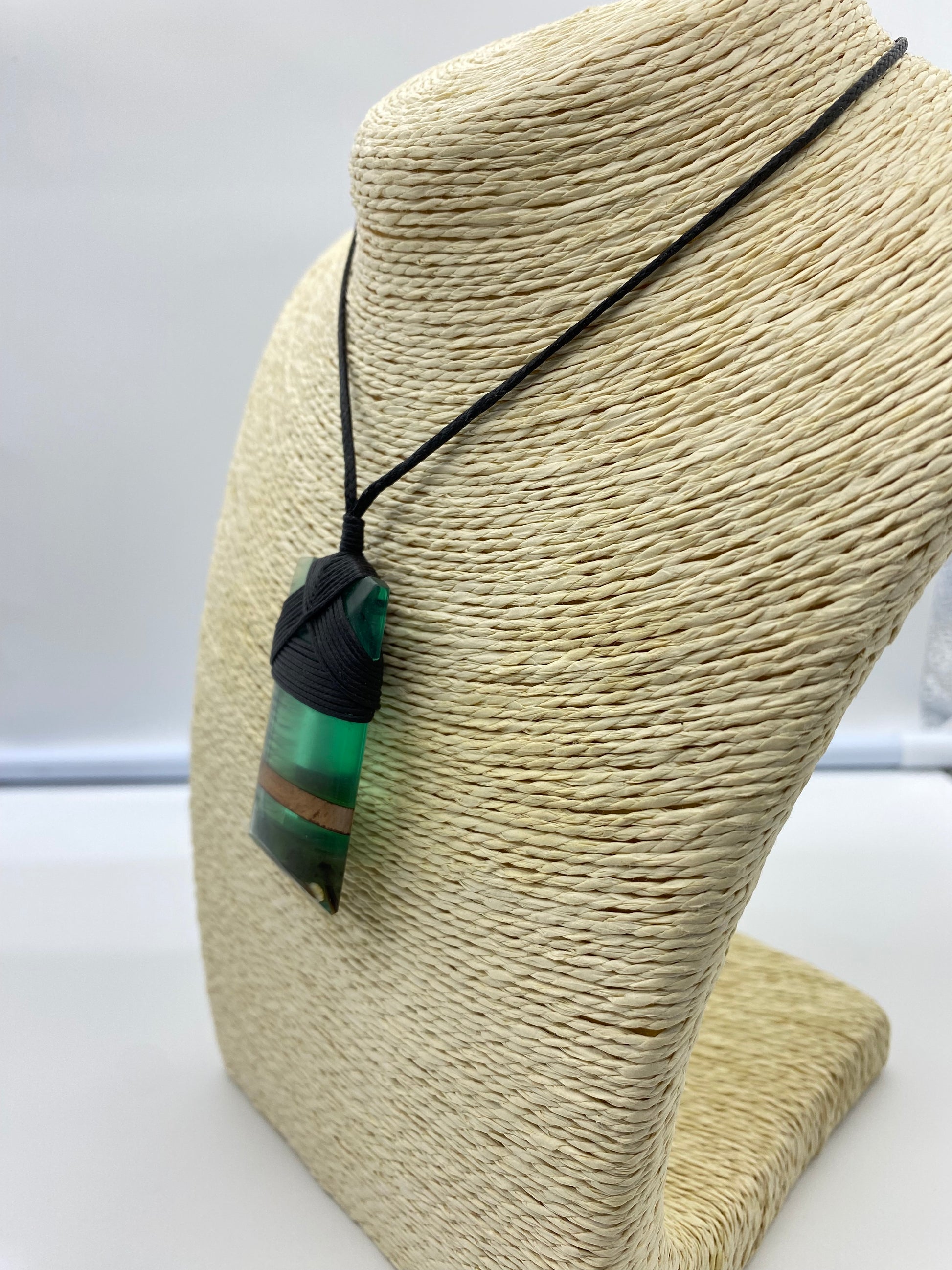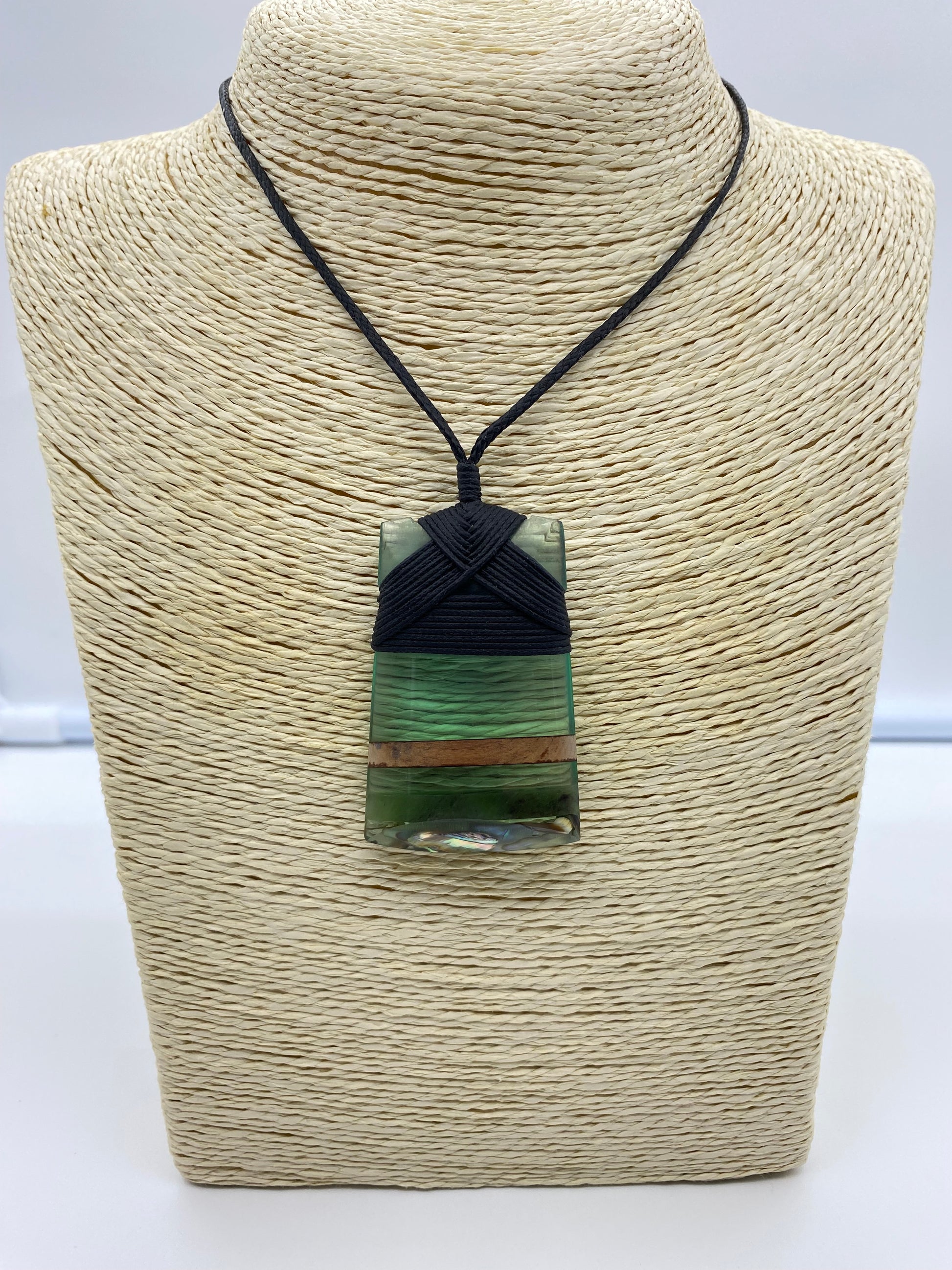 This gorgeous resin Toki design is created with wood, pounamu, and paua set in the coloured resin. The toki is lashed with a black waxed cord which really sets a beautiful contrast on this piece.